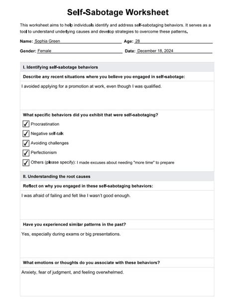Self-Sabotage Worksheet. Web sick of standing in your own way? Web search therapist aid for worksheets, guides, videos, and other psychotherapy tools.